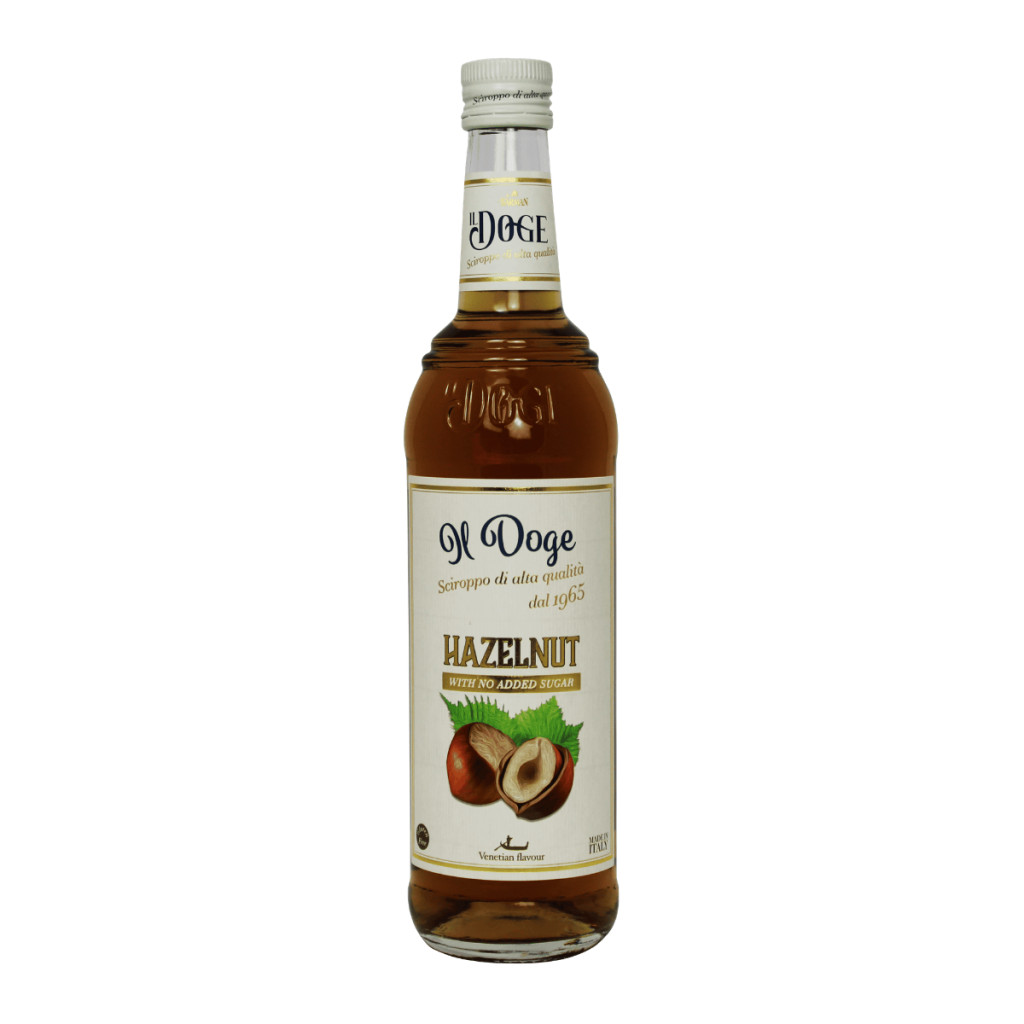 0,7 literes kiszerelésű Il Doge cukormentes mogyoró szirup limonádékhoz, koktél jellegű italokhoz és kávéitalokhoz.